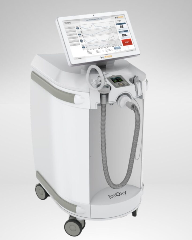 The ReOxy machine is state of the art engineering with AI assisted programing to provide optimum therapy, continually adjusts your oxygen levels in real time based on your body’s feedback!